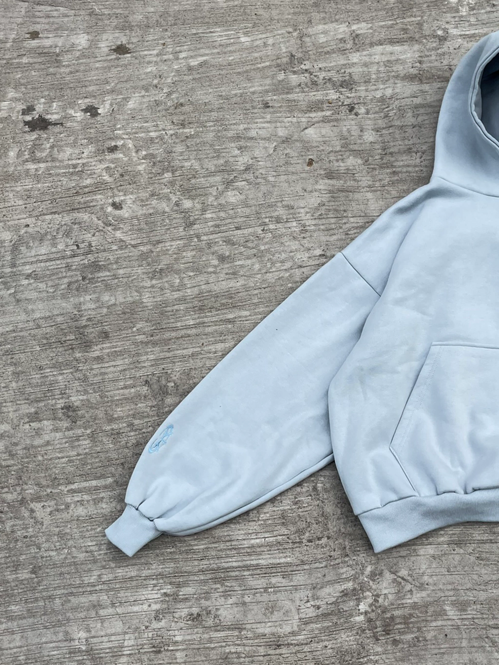 Contiene bordados con diseños caracteristicos de tokui en su manga derecha, asi como también dentro de la capucha; de igual manera presenta un estampado en su bolsillo con la frase que dictaminó el titulo de esta prenda.