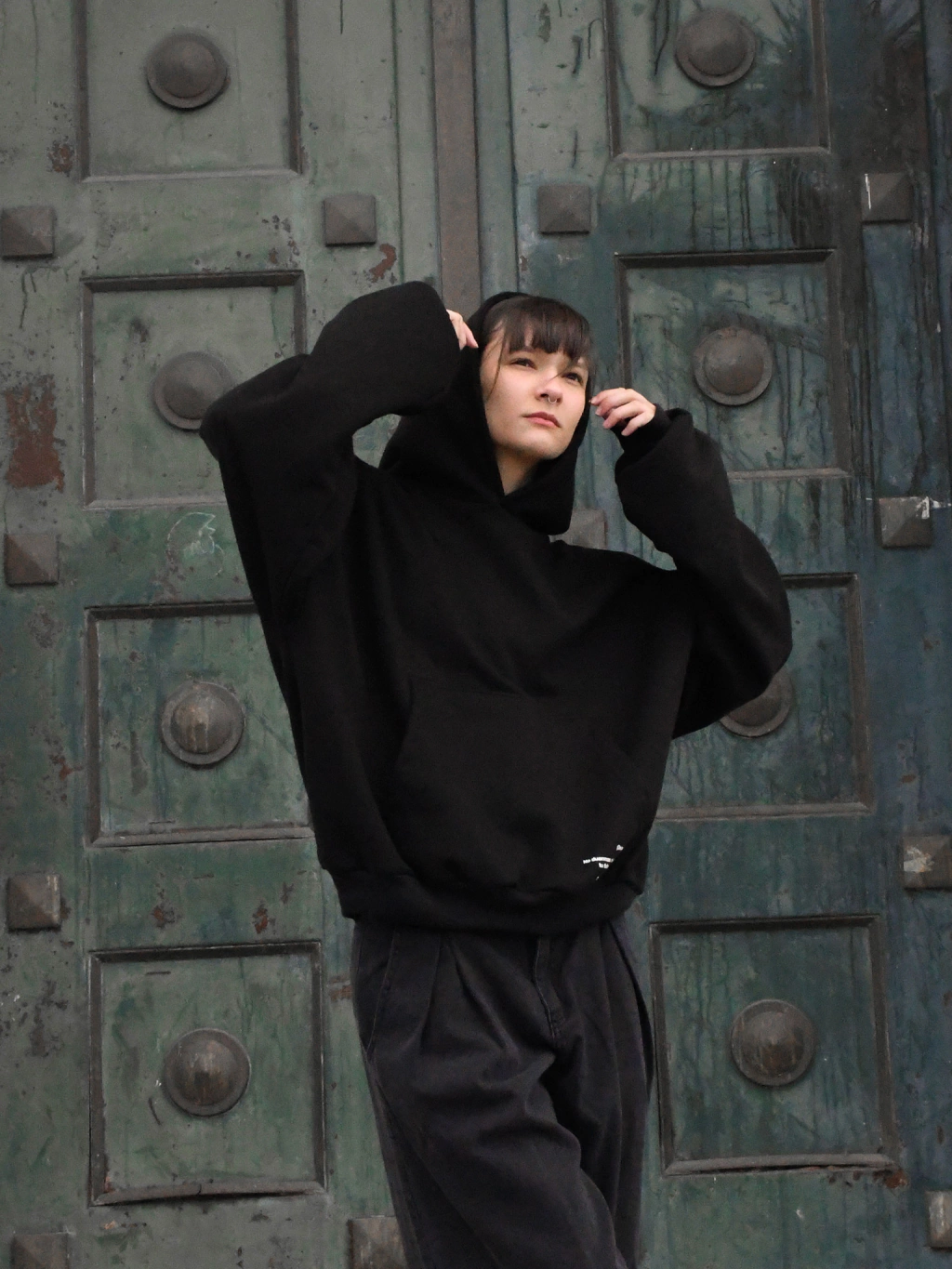 Buzo básico de corte over-boxy fit en color negro o perla. Hecho en frisa invisilbe de alta calidad prelavada (no encoje con los lavados), compuesta de algodón y poliester.
